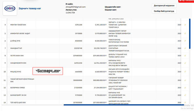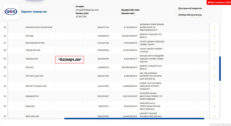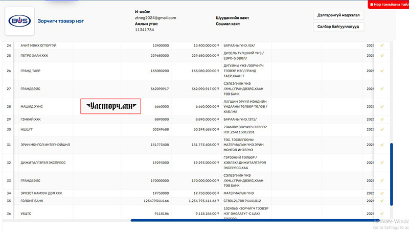 Нэгэн жишээ: “МАШИД ХҮНС” ХХК-ийн данс руу 6 сая 600 мянган төгрөгийн үнийн дүнгээр ГУРВАН УДАА гүйлгээ хийж нийт 19 сая 800 мянган төгрөгөөр “ЛАГШИН” эрүүл мэндийн ундаа авч уусан.