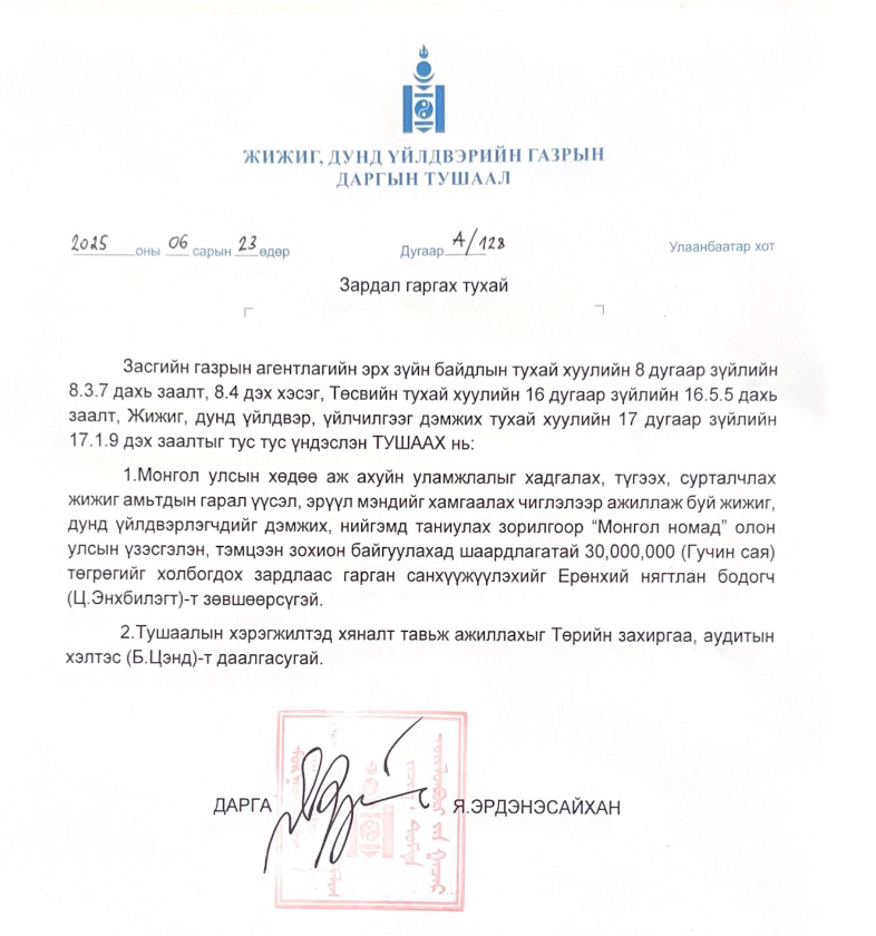 Үүнээс хамгийн их анхаарал татаж байгаа нь 2025 оны 06 дугаар сарын 23-ны өдөр "Монгол Номад" нохойн тэмцээнийг 30 саяар зохион байгуулсан байх юм.
