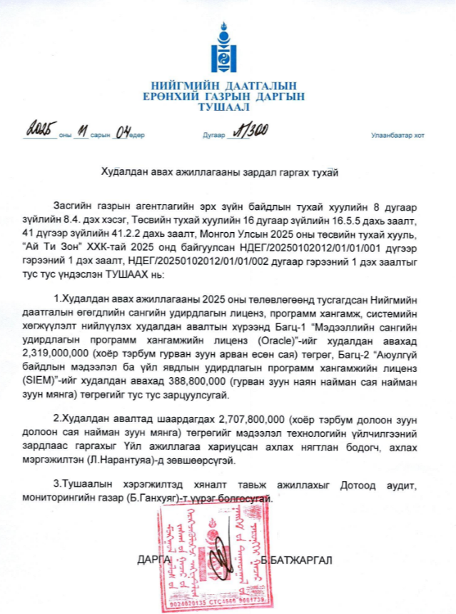 2025 оны 11 дүгээр сарын 04-ний өдөр 2 ТЭРБУМ 707 САЯ ДРОГРАММЫН ЛИЦЕНЗ авчээ.