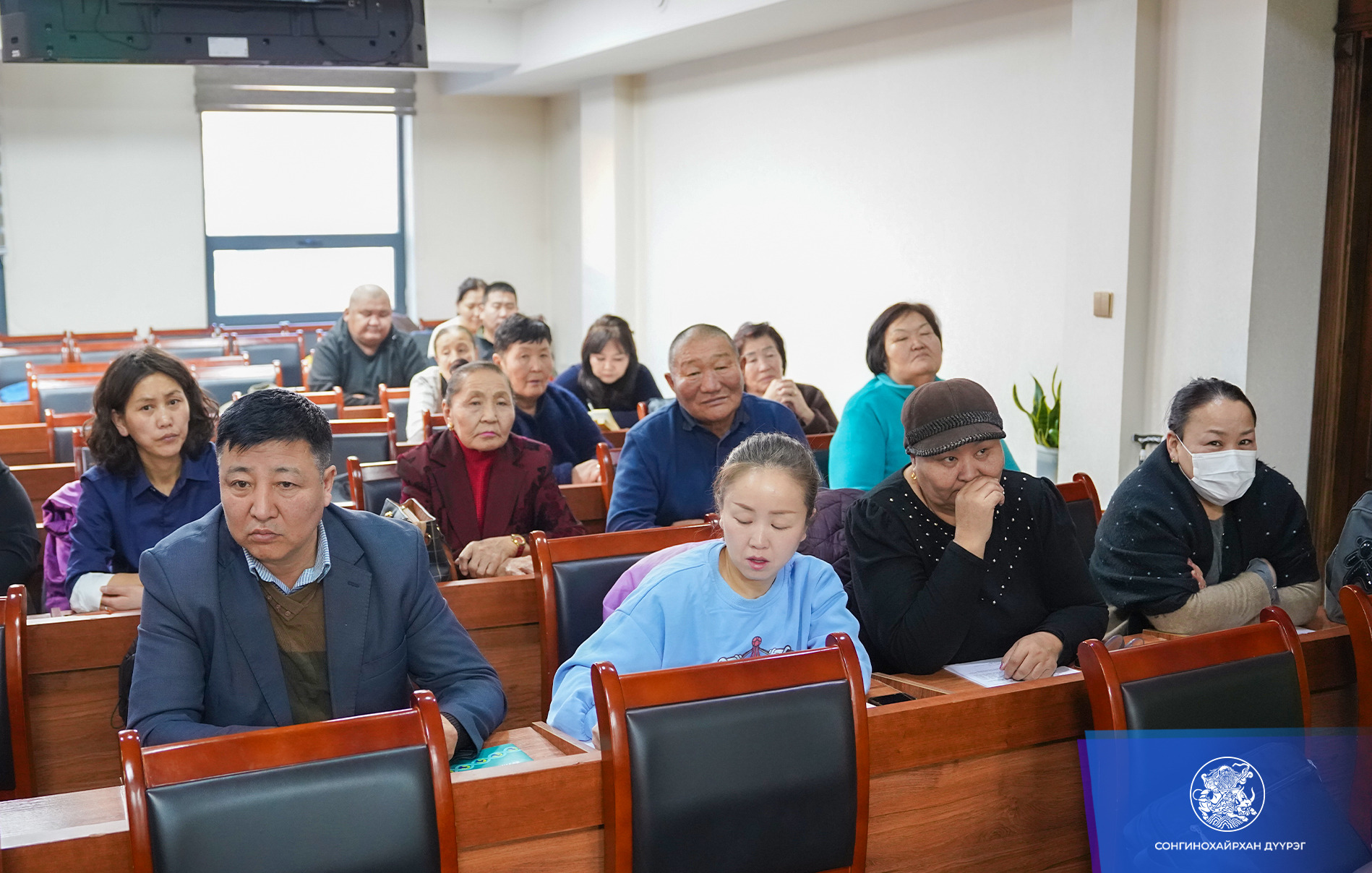 Дээрх хорооны иргэдийн төлөөлөл өнөөдөр дүүргийн Засаг даргын орлогч Д.Хосбаяртай уулзаж тулгамдсан асуудлаарынхаа талаар хэллээ. Тухайлбал газар чөлөөлөлт, оюутны тэтгэлэгт хамрагдах, сайжруулсан түлшний цэг ажиллуулах хүсэлтэй байгаа талаар, үйлдвэрлэл үйлчилгээ эрхлэх хүсэлтэй байгаа иргэнд газар олгох боломжтой эсэх, байрны доод давхраас хөрсний ус гарч ирж байгаа талаар иргэд санал хэллээ. Дүүргийн Засаг даргын орлогч Д.Хосбаяр иргэдэд тулгамдаж байгаа асуудлыг сонсож зарим газар дээр өөрөө биечлэн ажиллахаар боллоо. Мөн хууль эрхзүйн хүрээнд иргэдийн тулгамдаж байгаа хэрхэн шийдвэрлэх боломж талаар хариулт өгч, холбогдох алба хэлтсээс нь нэмэлт мэдээлэл өгүүллээ.