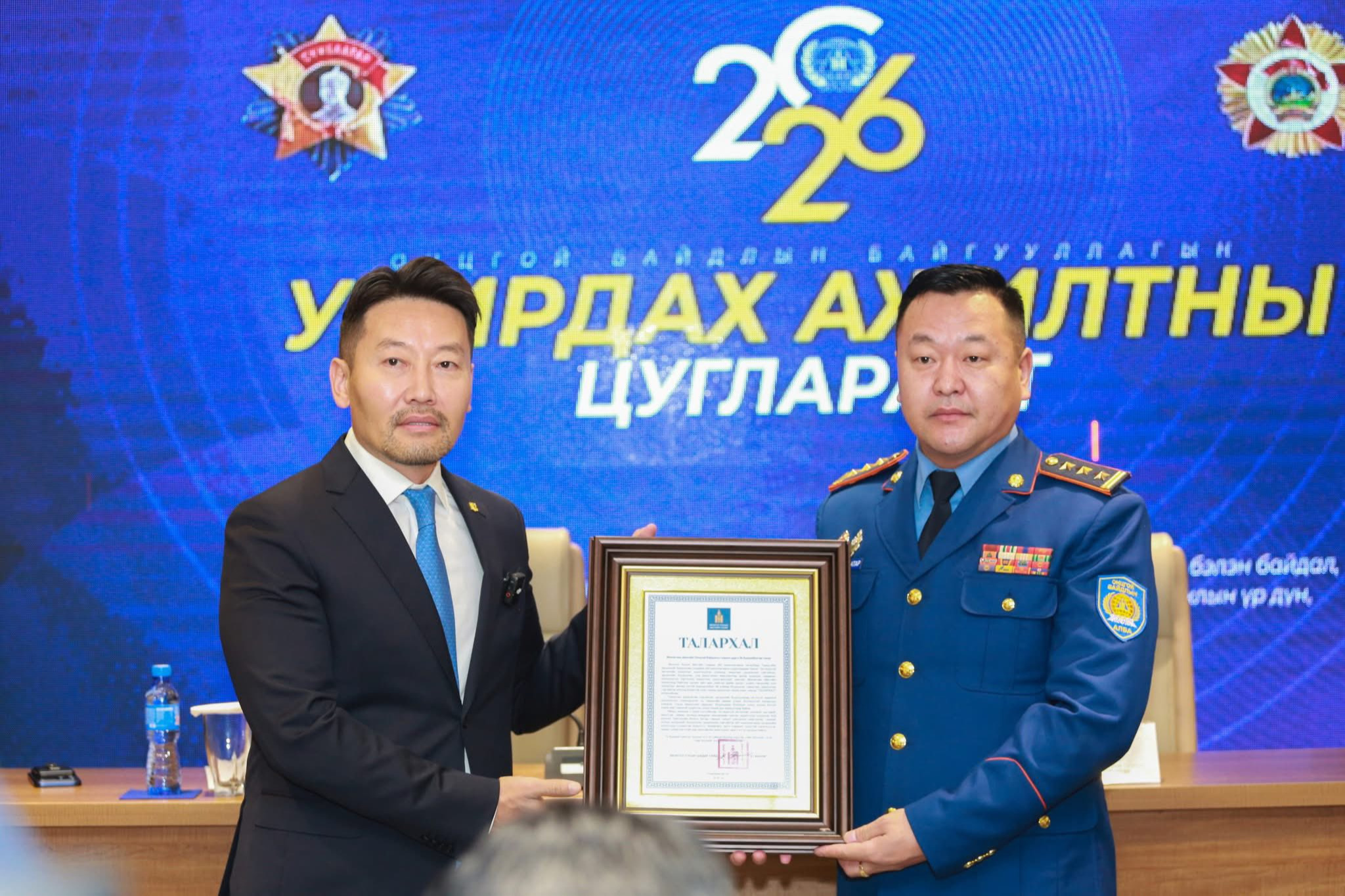 Онцгой байдлын байгууллагын 2026 оны үйл ажиллагааны зорилт, чиглэлийг тодорхойлох хүрээнд зохион байгуулж байгаа удирдах ажилтны цугларалт хоёр дахь өдрөө үргэлжилж байна. Тус арга хэмжээнд Монгол Улсын Шадар сайд, УОК-ын дарга Х.Ганхуяг оролцож, хэлсэн үгэндээ “Монгол Улсын Засгийн газраас үндэсний сөрөн тэсвэрлэх чадавх, тэр дундаа гамшгийг сөрөн тэсвэрлэх чадавхыг бэхжүүлэх асуудлыг онцгойлон анхаарч ажиллаж байна. Монгол Улсын гамшгийг сөрөн тэсвэрлэх чадавхыг бэхжүүлэх төслийг хэрэгжүүлэх Монгол Улс болон Азийн хөгжлийн банк хооронд 2025 оны арваннэгдүгээр сарын 04-ний өдөр байгуулсан “Санхүүжилтийн ерөнхий хөтөлбөр”-ийг Монгол Улсын Засгийн газрын өргөн мэдүүлснээр Монгол Улсын Их Хурал 2025 оны арванхоёрдугаар сард соёрхон батлаад байна.