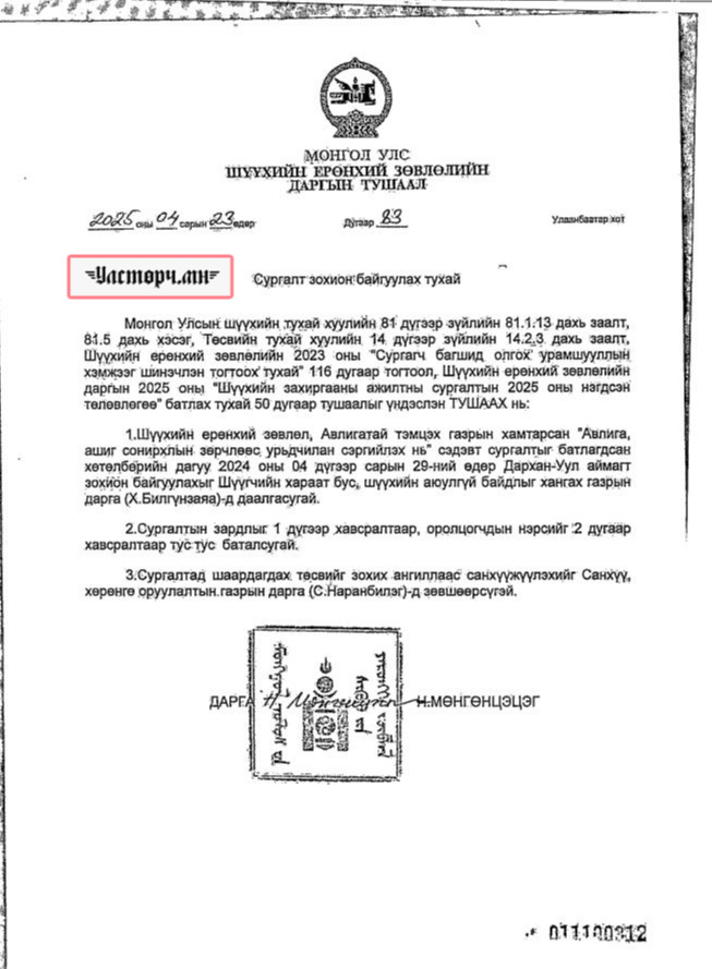 Түүнчлэн ШЕЗ-ийн дарга Н.МӨНГӨНЦЭЦЭГИЙН 2025 оны 04 дүгээр сарын 23-нд ШЕЗ болон АТГ хамтарсан “Авлига, ашиг сонирхолын зөрчлөөс урьдчилан сэргийлэх нь” сэдэвт нэг өдрийн сургалтад хамрагдах хүмүүсийн зочид буудлын зардалд ТӨСВИЙН 9 САЯ ТӨГРӨГИЙГ зарцуулсан байна.