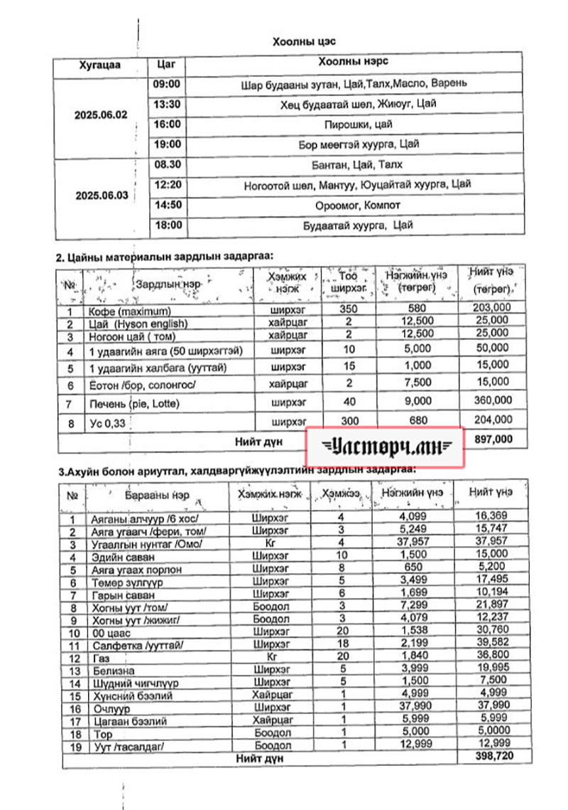 Ингэхдээ тэдгээр оролцогчдын хоол, унааны зардалд төсвөөс 9 сая 457 мянган төгрөгийг зарцуулжээ.