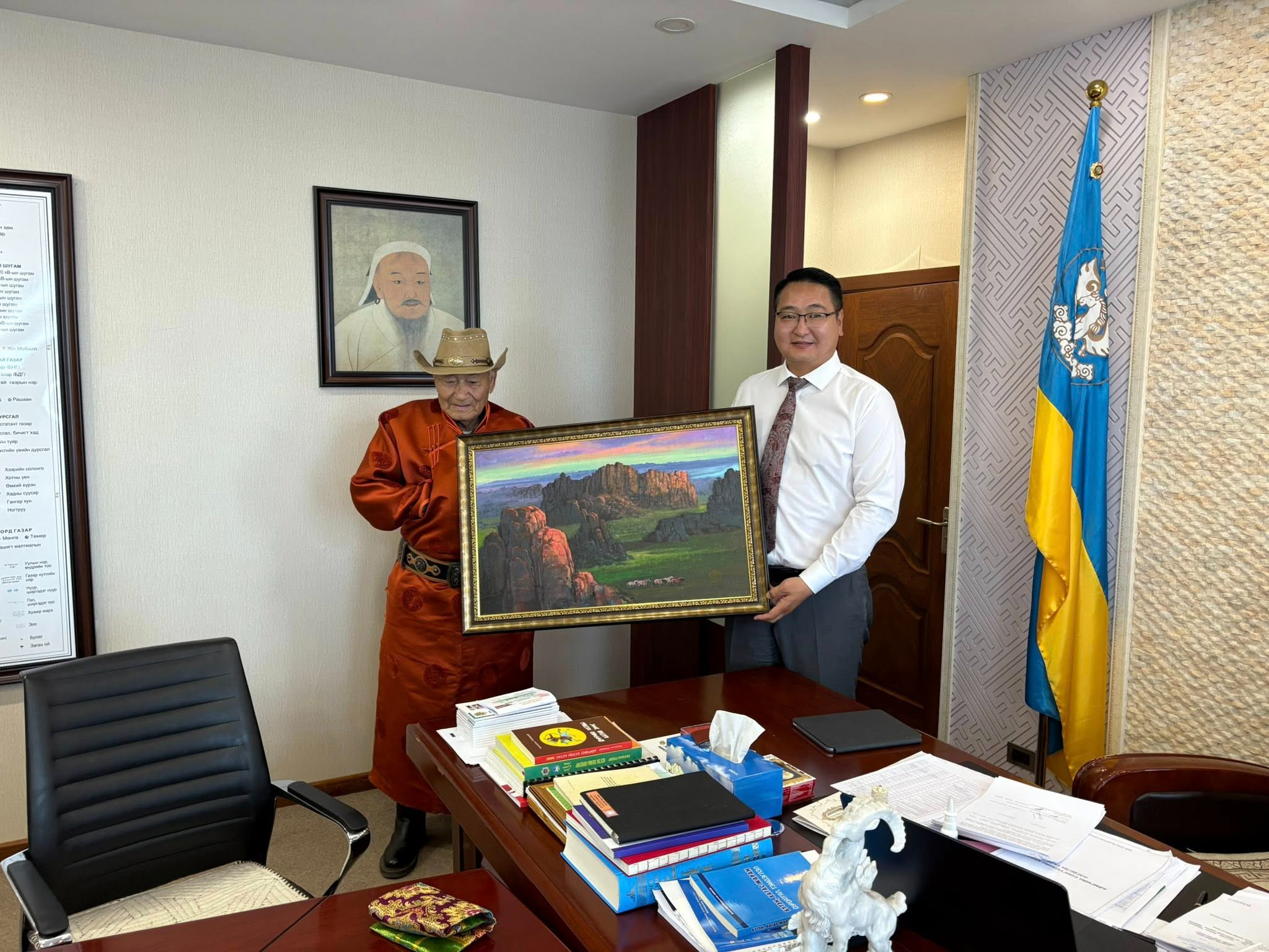 Ардын зураач Ц.Байды гуай Аймгийн Засаг дарга С.Мөнхчулуунтай уулзаж өөрт нь зориулан зурсан “Их газрын чулуу” уран бүтээлээ хүндэтгэлтэйгээр гардуулла