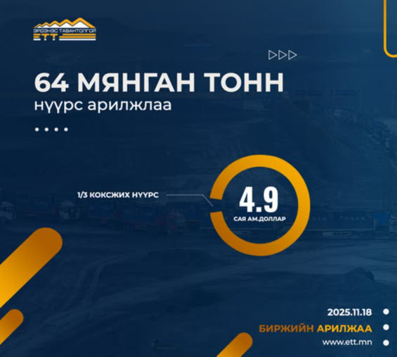ЭТТ: 64 МЯНГАН ТОНН 1/3 КОКСЖИХ НҮҮРС АРИЛЖЛАА