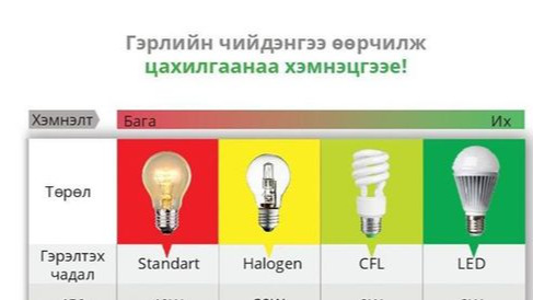 Гэрлийн чийдэнгээ өөрчилж цахилгаанаа хэмнэцгээе