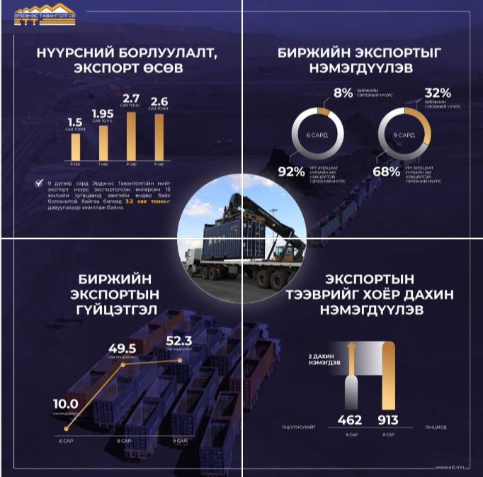 ЭТТ: “ЭРДЭНЭС ТАВАНТОЛГОЙ” ХК 11 ДҮГЭЭР САРД 2.4 САЯ ТОНН НҮҮРС БОРЛУУЛЖ, 3.4 САЯ ТОНН НҮҮРС АЧЛАА