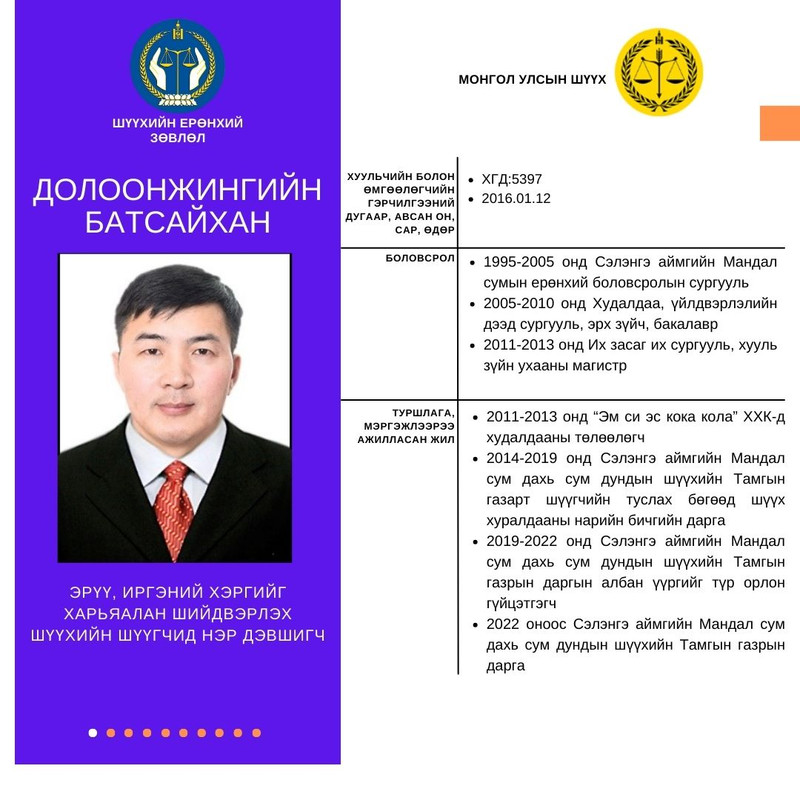 Анхан шатны шүүхийн шүүгчийн сонгон шалгаруулалтад нэр дэвшигчдийн танилцуулга (11-20)