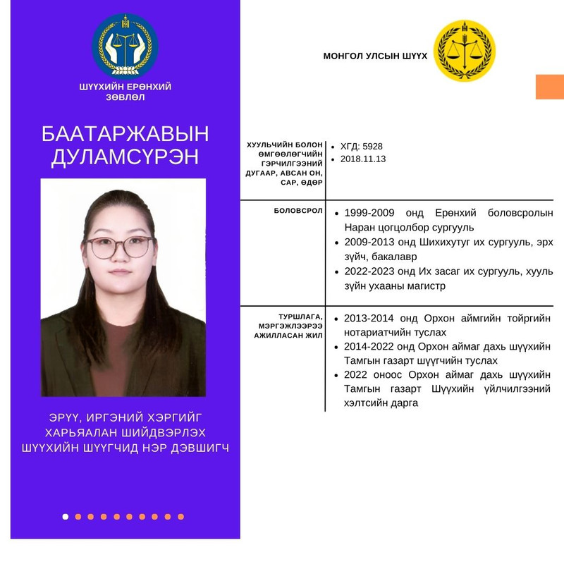Анхан шатны шүүхийн шүүгчийн сонгон шалгаруулалтад нэр дэвшигчдийн танилцуулга (21-30)