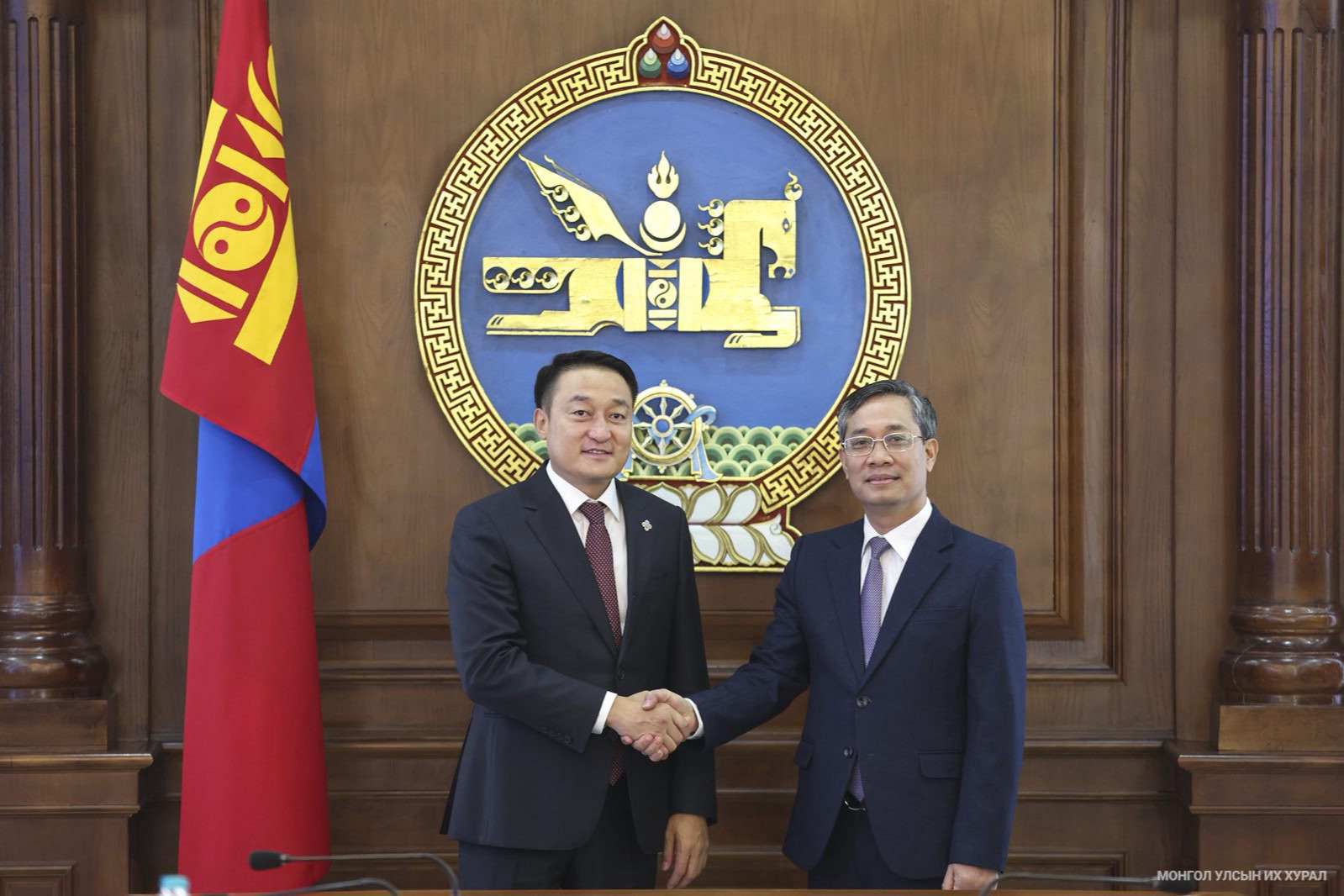 Монгол Улсын Их Хурлын дарга Д.Амарбаясгалан өнөөдөр (2025.09.30) Бүгд Найрамдах Социалист Вьетнам Улсаас Монгол Улсад суугаа Онц бөгөөд Бүрэн эрхт Элчин сайд Нгуен Дуан Тань-ыг хүлээн авч уулзлаа.