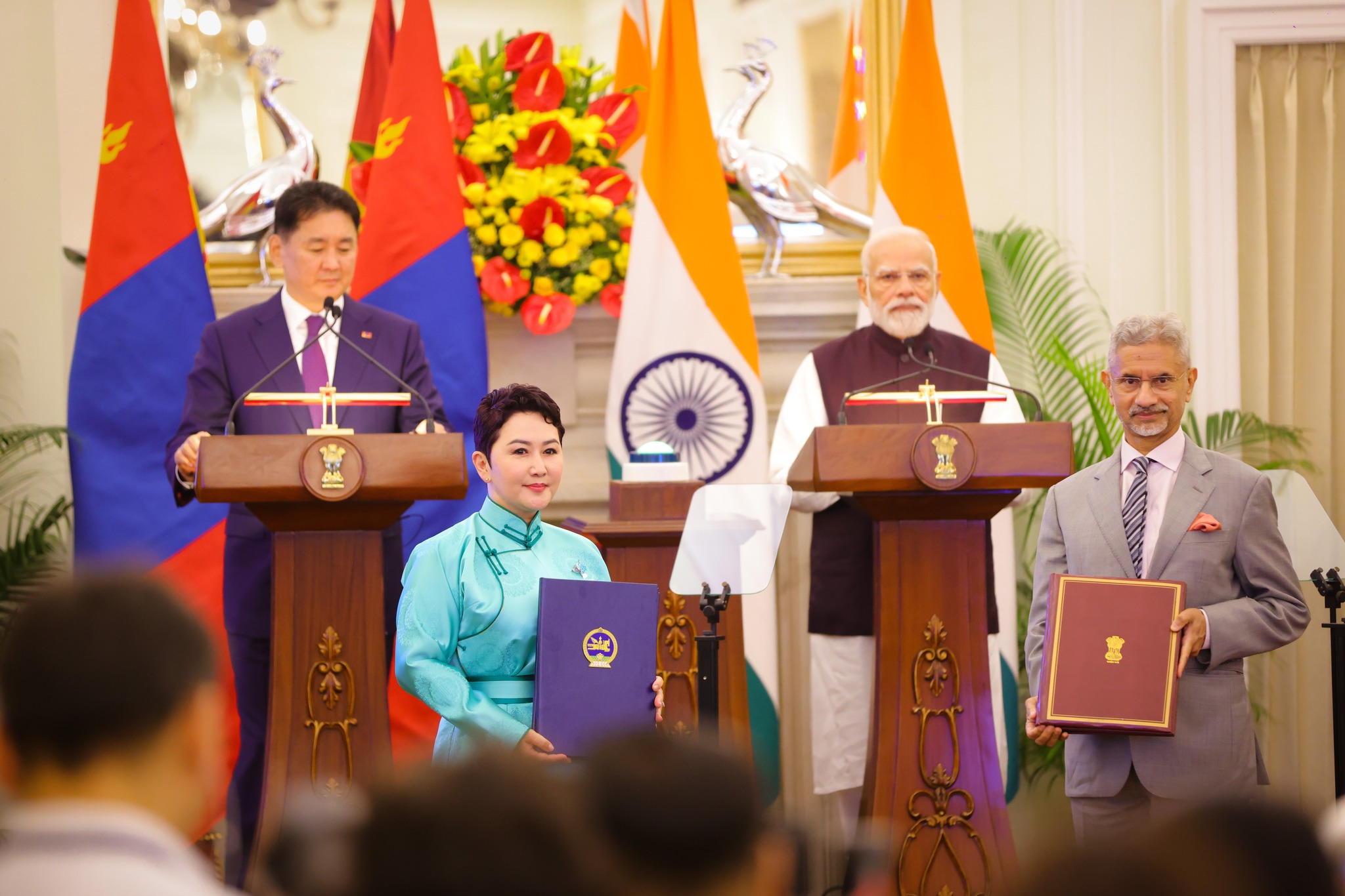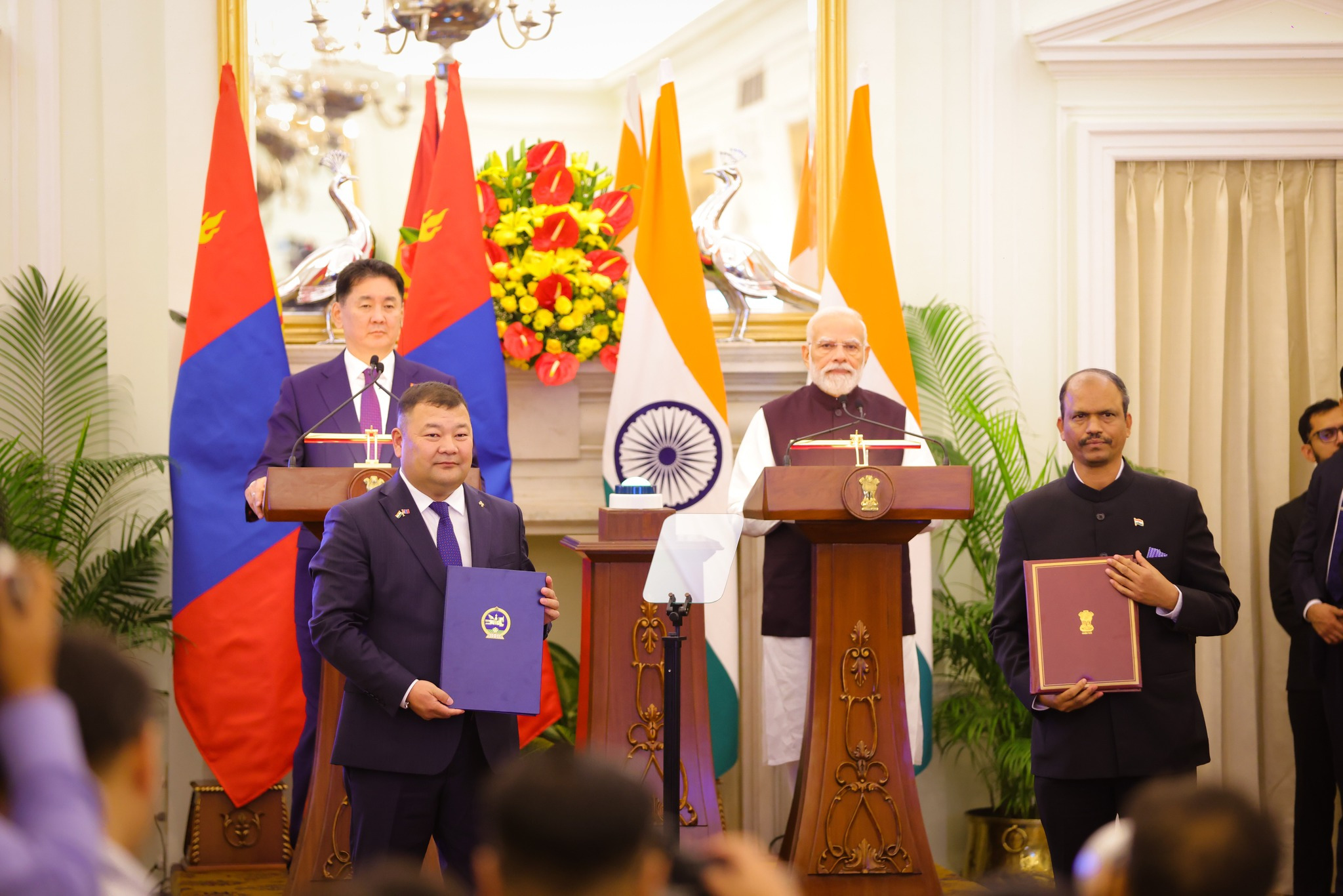 Бүгд Найрамдах Энэтхэг Улсын Ерөнхийлөгч Дроупади Мурму болон Ерөнхий сайд Нарендра Модигийн урилгаар Монгол Улсын Ерөнхийлөгч Ухнаагийн Хүрэлсүхийн тус улсад хийж буй төрийн айлчлал үргэлжилж байна. Харилцаа, хамтын ажиллагааг өргөжүүлэн хөгжүүлэхтэй холбоотой баримт бичгүүдэд гарын үсэг зурах ёслолд Монгол Улсын Ерөнхийлөгч У.Хүрэлсүх, БНЭУ-ын Ерөнхий сайд Н.Моди нар оролцлоо.