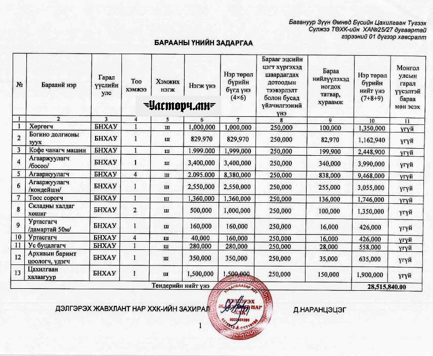 Тус компанийн гүйцэтгэх захирал Х.ГАНЧУЛУУН гэгч эрхэм айл өрхөөс хураасан ТОГНЫ МӨНГӨӨР хөргөгч, тоос сорогч, ус буцалгагч, кофены машин тэргүүтэй ЦАХИЛГААН БАРАА, 154 саяар бага багтаамжийн автобус, 21 саяар AI сургалт авсан зэрэг зөрчил гаргажээ. Эдгээр мөнгөн зарлага нь Төсвийн тухай болон Төрийн хэмнэлтийн тухай хуульд НИЙЦЭХГҮЙ байгаа юм.