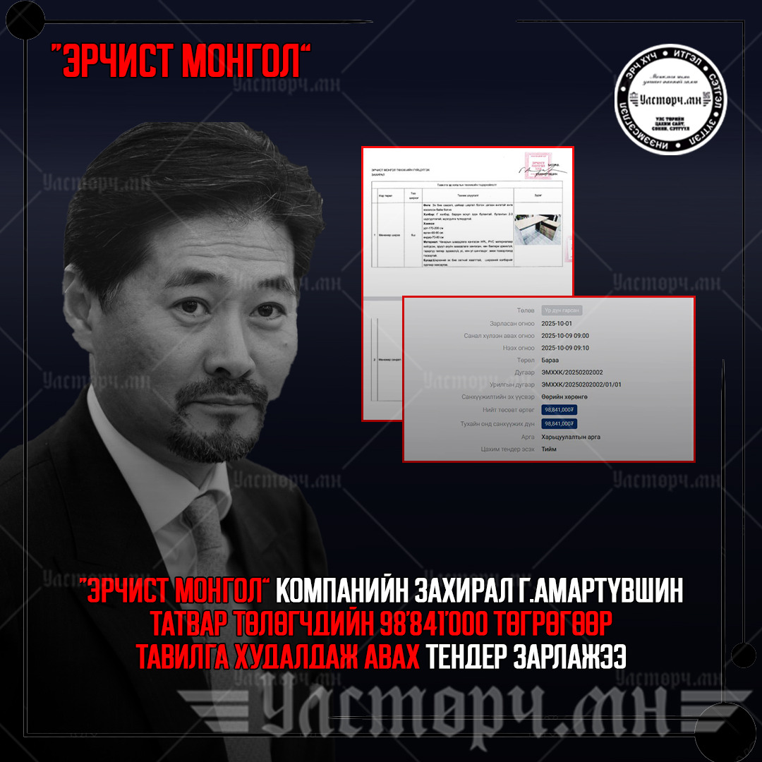 "ЭРЧИСТ МОНГОЛ" компаний захирал Г.АМАРТҮВШИН татвар төлөгчдийн 98 САЯАР сандал, ширээ худалдаж авна