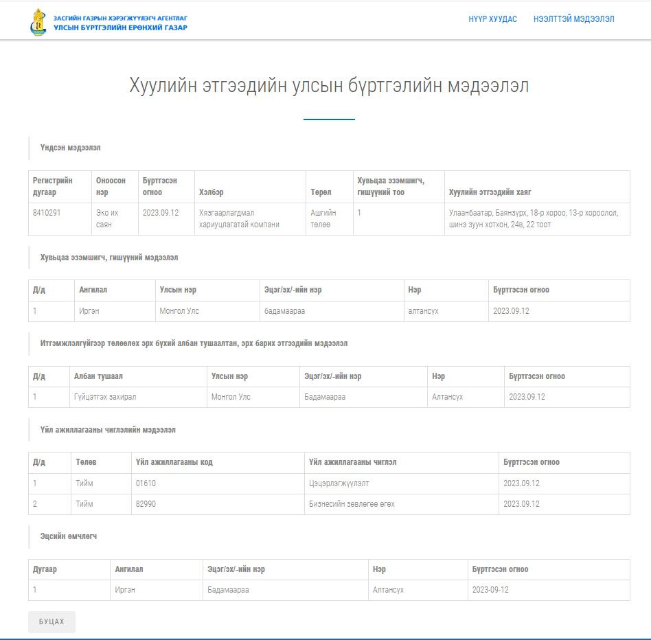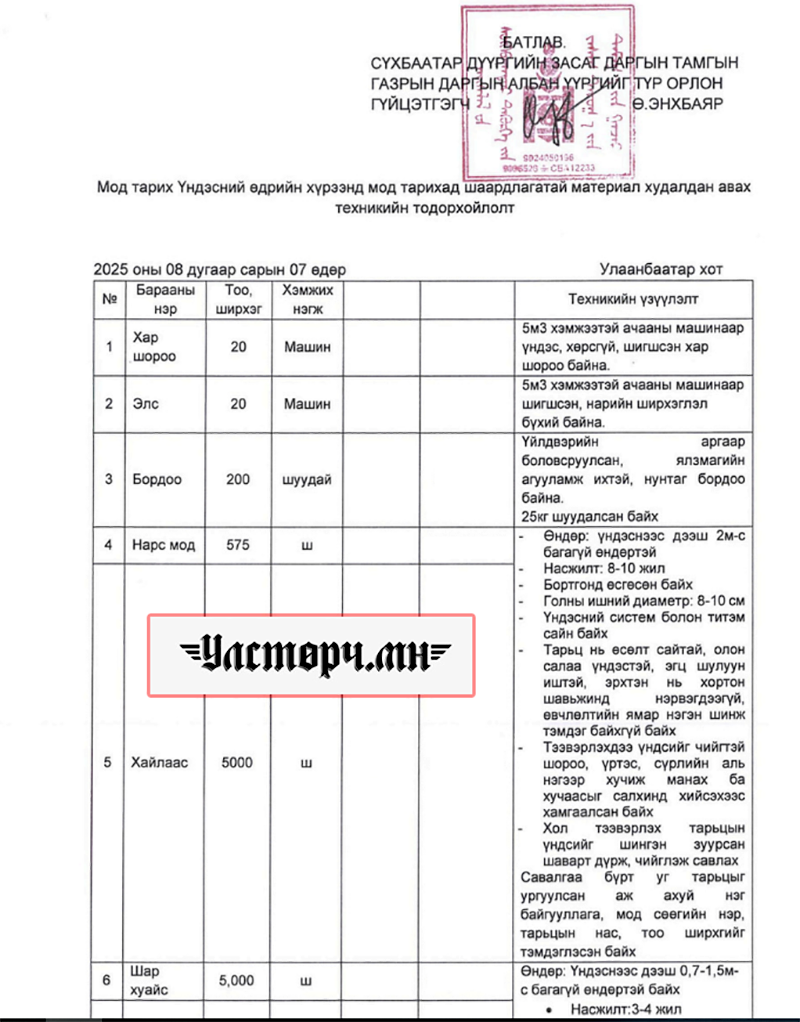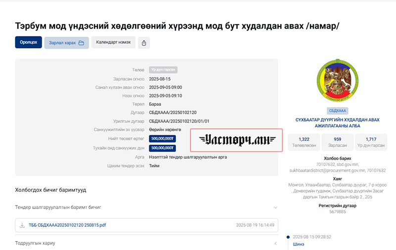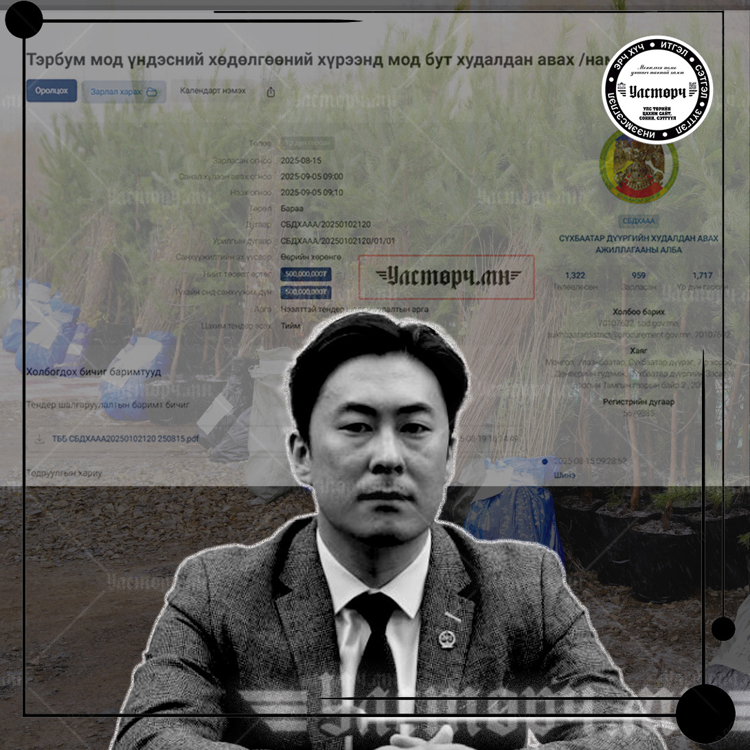 Тендерт шалгарсан компани нь 2023 оны 09 сард үүсгэн байгуулагдсан. Б.Алтансүх гэх иргэний эзэмшлийн, бизнесийн зөвлөгөө өгөх, цэцэрлэгжүүлэлтийн үйл ажиллагаа явуулдаг аж ахуй нэгж гэж Улсын бүртгэлийн Ерөнхий газрын хуулийн этгээдийн бүртгэлд бичигджээ. 2023 оны 09 сараас 2025 оны 10 сарын 01-н хүртэл хоёр жилийн хугацаанд ЕРДӨӨ ГАНЦ ТЕНДЕРТ шалгалсан нь Сүхбаатар дүүргийн Тамгын газраас зарласан ХАГАС ТЭРБУМЫН тендер аж. Зах зээлийн үнийн судалгаагаар харьцуулж үзвэл 20 машин ЭЛС, 20 машин ХАР ШОРОО, 200 ШУУДАЙ БОРДОО, 600 ширхэг НАРС, 5000 хайлаас, 5000 шар хуайс, 4000 голт бор зэргийг нийтэд нь 200 гаруй сая төгрөгт багтаан худалдан авч болохоор байна. Үүний цаана 274 сая төгрөг ЦЭВЭР АШИГ хэлбэрээр очиж байна.