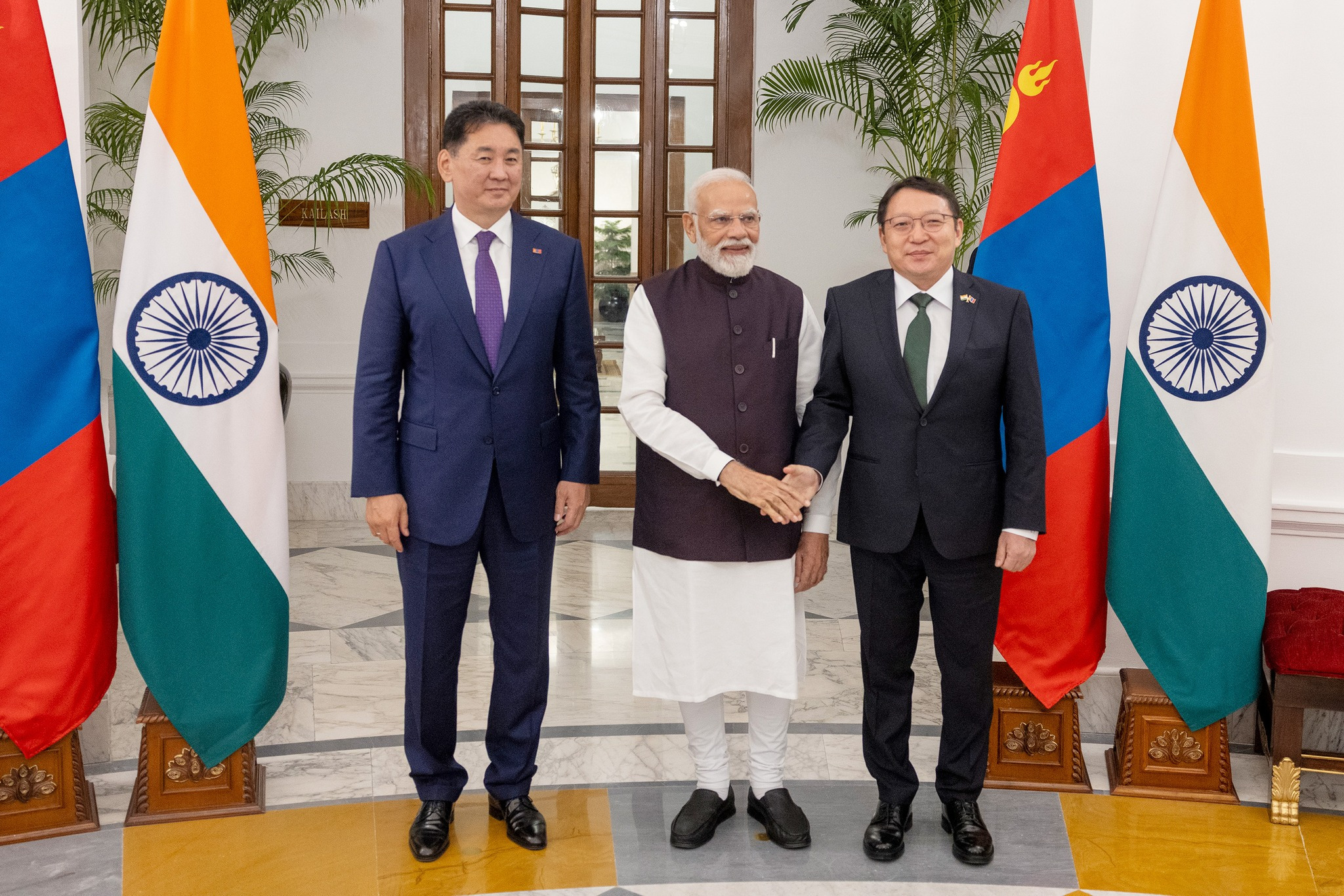 Энэхүү айлчлалын бүрэлдэхүүнд УИХ-ын гишүүд, Засгийн газрын гишүүдийн төлөөлөл, Монгол-Энэтхэгийн хамтарсан Газрын тос боловсруулах үйлдвэрийн төслийн ажлын хүрээнд “Эрдэнэс Монгол” нэгдлийн гүйцэтгэх захирал С.Наранцогт, “Монгол газрын тос боловсруулах үйлдвэр” ТӨХХК-ийн гүйцэтгэх захирал Д.Алтанцэцэг нар ажиллаж байна. Айлчлалын хүрээнд зохион байгуулагдсан Монгол-Энэтхэгийн бизнес форумд Монгол Улсаас 13 салбарын 43 аж ахуйн нэгж, Энэтхэгээс 100 орчим аж ахуйн нэгжийн төлөөлөл оролцож, өөрсдийн бүтээгдэхүүн, үйлчилгээгээ танилцуулж, бизнесийн хамтын ажиллагаа өрнүүллээ.Бизнес форумын үеэр “Эрдэнэс Монгол” нэгдлийн гүйцэтгэх захирал С.Наранцогт БНЭУ-ын хамгийн том төрийн өмчит ган үйлдвэрлэгчдийн нэг “Steel Authority of India Limited” (SAIL) компанийн ерөнхий менежер Панкэж Пүритэй уулзаж, коксжих нүүрсний экспортын чиглэлд хамтран ажиллахаар санал солилцлоо.Энэтхэгийн SAIL компани нь Монгол Улсаас коксжих нүүрс нийлүүлэх анхны туршилтын бараа эргэлтийн багцыг хүлээн авахад бэлэн байгаагаа илэрхийллээ.