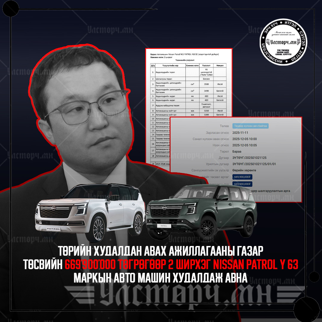 Төрийн худалдан авах ажиллагааны газар төсвийн 670 САЯ төгрөгөөр NISSAN Y63 авто машин авна