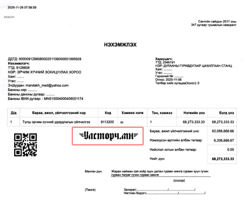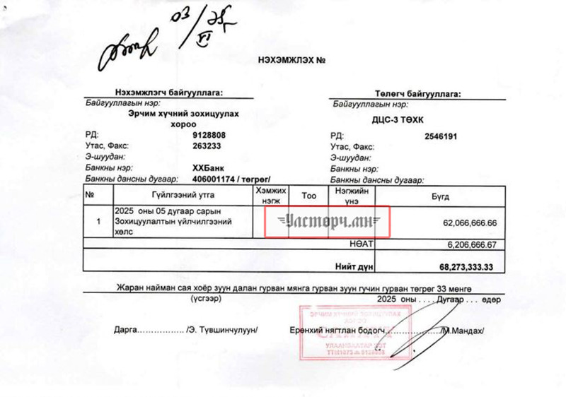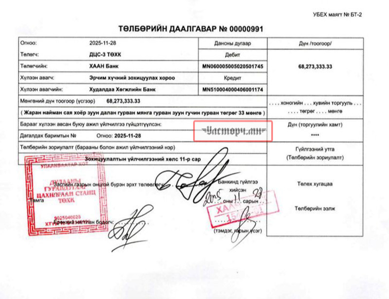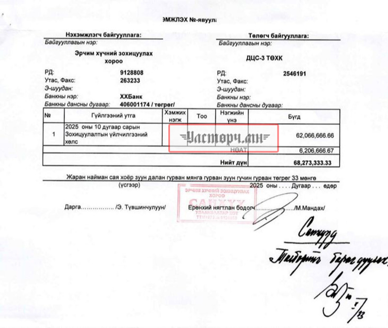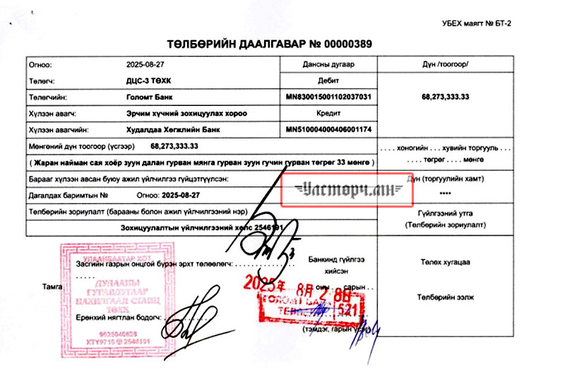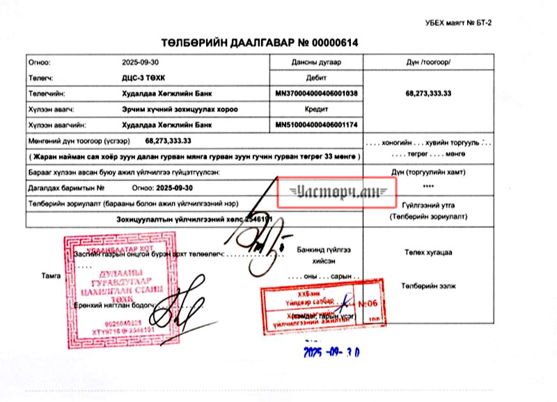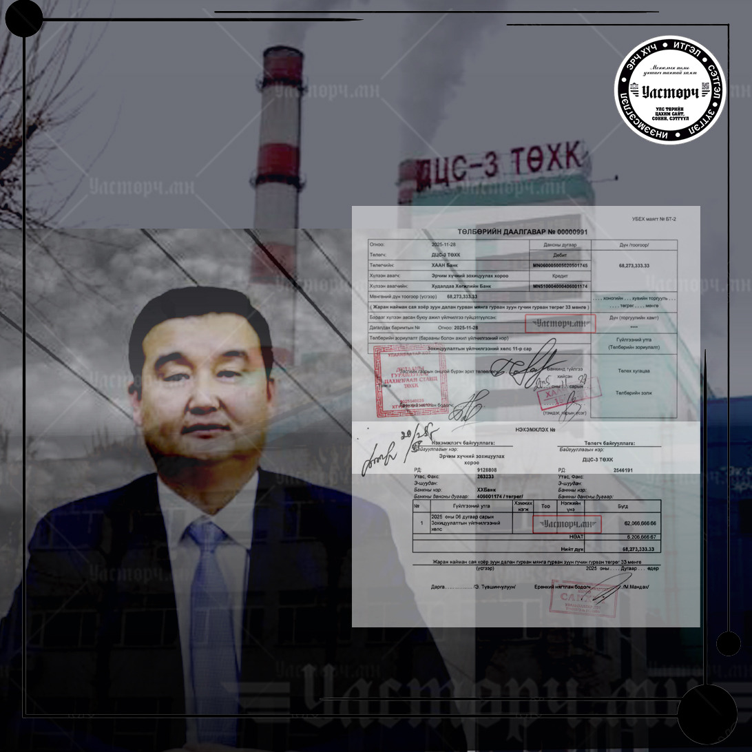 Төр засаг татвар, шимтгэл гэж авна, түүний хажуугаар Эрчим хүчний зохицуулах хорооны дарга гишүүд бас 60-70 саяар нь бас цувчуулж авчээ. Тодруулбал, “Дулааны гуравдугаар цахилгаан станц” ТӨХК-иас Эрчим хүчний зохицуулах хорооны нэр дээрх Худалдаа хөгжлийн банкны 406001174 тоот данс руу “ЗОХИЦУУЛАЛТЫН ҮЙЛЧИЛГЭЭНИЙ ХӨЛС” гэх утгаар 2025 оны 05, 06, 08, 09, 10, 11 дүгээр саруудад тус бүр 68 сая 273 мянга 33 төгрөг буюу нийт 409 сая 639 мянга 998 төгрөгийг гаргуулан авчээ.