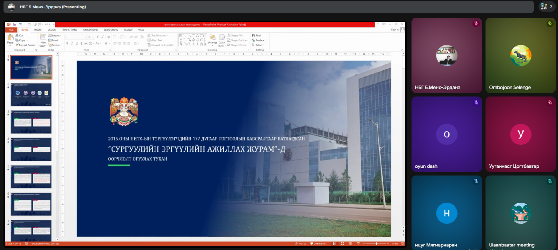 "СУРГУУЛИЙН ЭРГҮҮЛИЙН АЖИЛЛАХ ЖУРАМ"-Д ӨӨРЧЛӨЛТ ОРУУЛАХ САНАЛЫГ АЖЛЫН ХЭСЭГ ХЭЛЭЛЦЛЭЭ