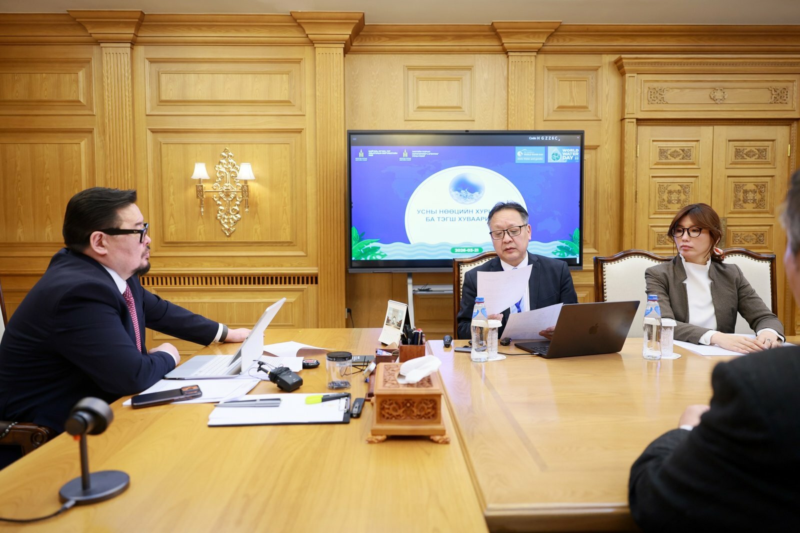 Өгсөн үүрэг даалгаврын явцын талаар Усны газрын дарга З.Батбаяр өнөөдөр /2026.03.26/ Ерөнхий сайдад мэдээлэл өглөө. “Оюу толгой” ХХК-ийн зүгээс хаягдал усны дүгнэлт гаргуулах болон усны аудит хийлгэх тухай албан бичгийг Усны газарт ирүүлсэн талаар мэдээлэв.