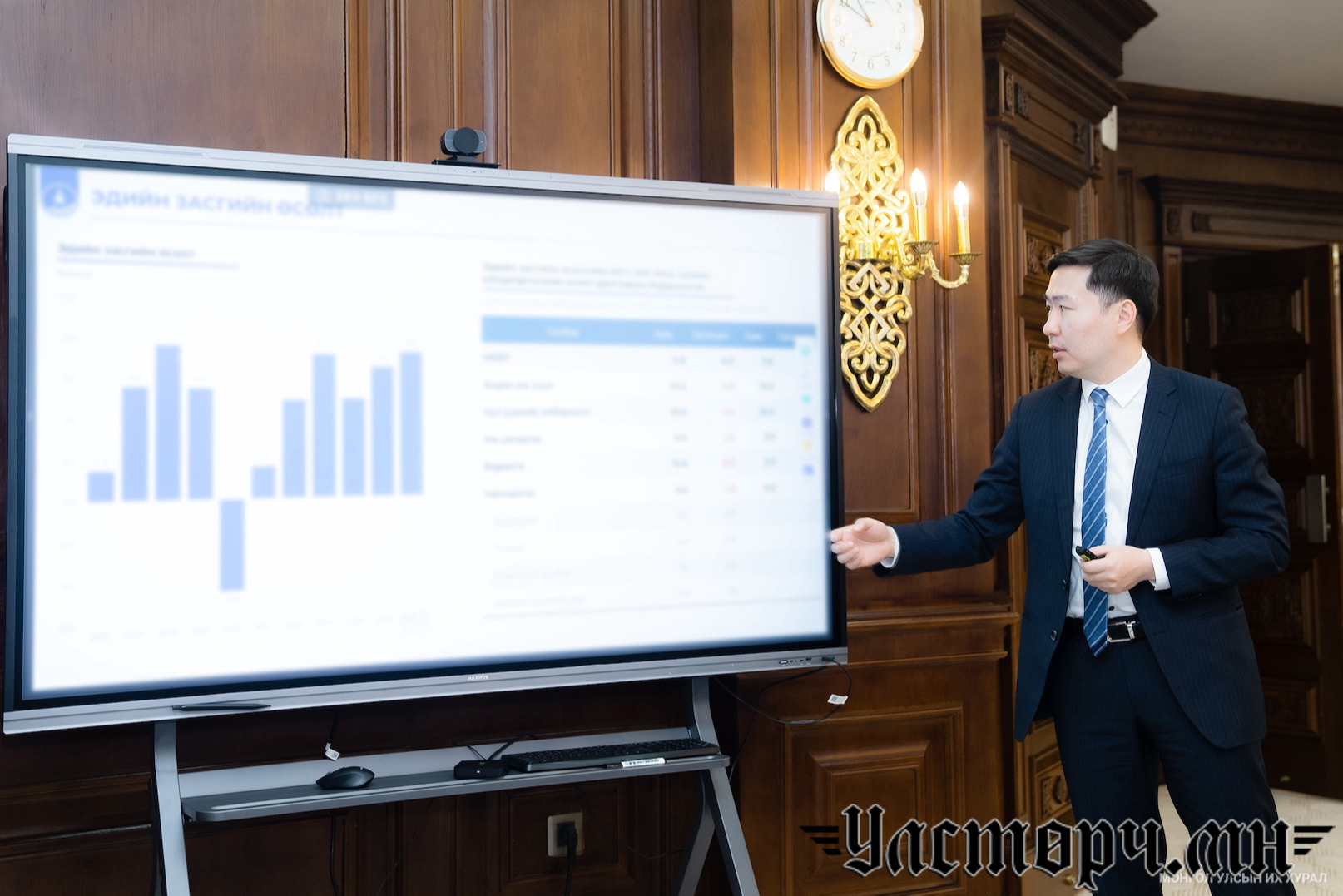 Үндэсний статистикийн хорооны дарга Б.Батдаваа “Эдийн засгийн нөхцөл байдал-өрхийн санхүү” сэдвээр мэдээлэл хийж, нийгэм, эдийн засгийн үндсэн үзүүлэлтүүд, цаашид анхаарах асуудлуудын талаар дэлгэрэнгүй танилцуулав.