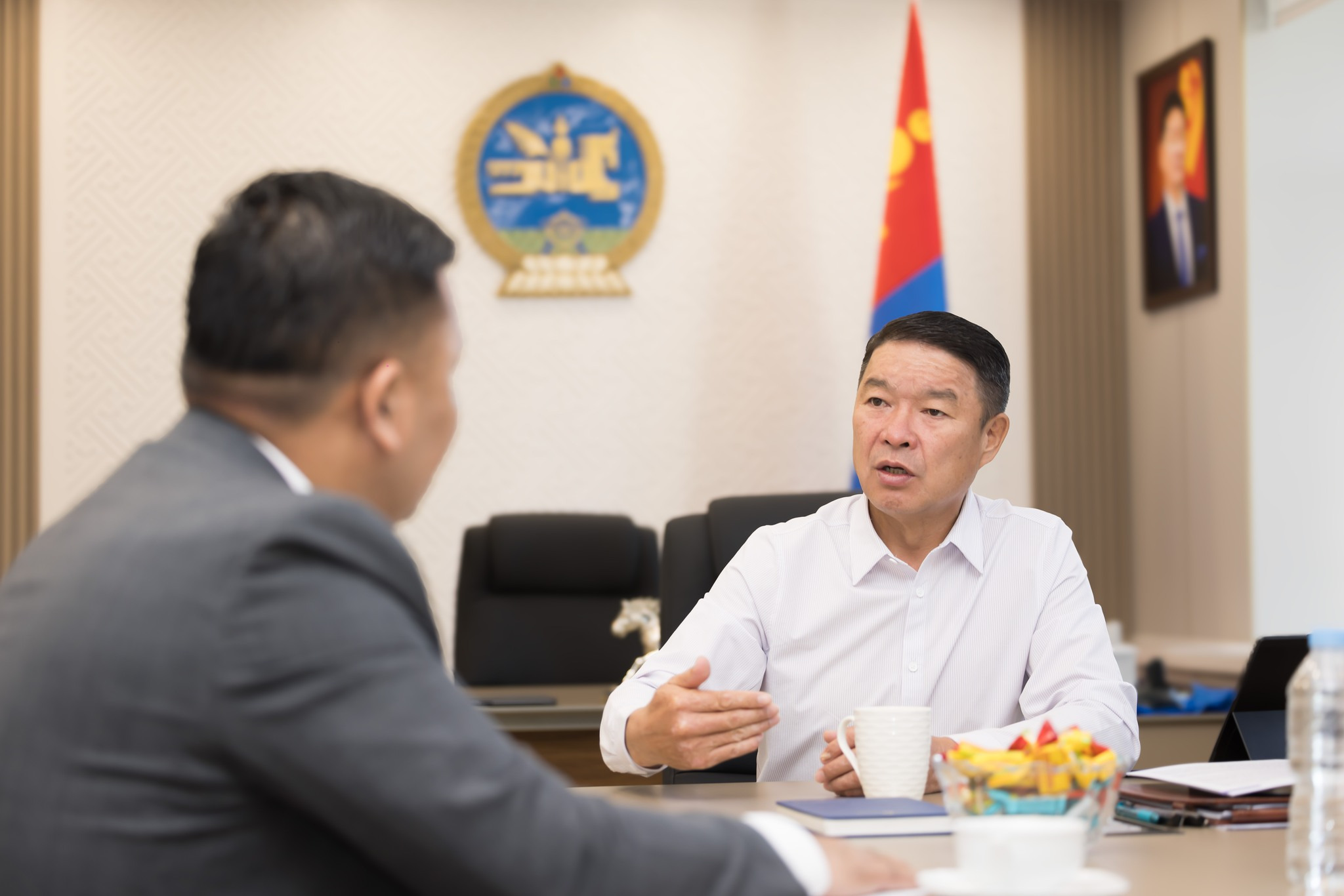 Б.БАТБААТАР САЙД БАЯНХОНГОР АЙМГИЙН ЗАСАГ ДАРГА Д.МӨНХСАЙХАНТАЙ УУЛЗАЖ, САЛБАРЫН ТУЛГАМДСАН АСУУДЛААР САНАЛ СОЛИЛЦЛОО