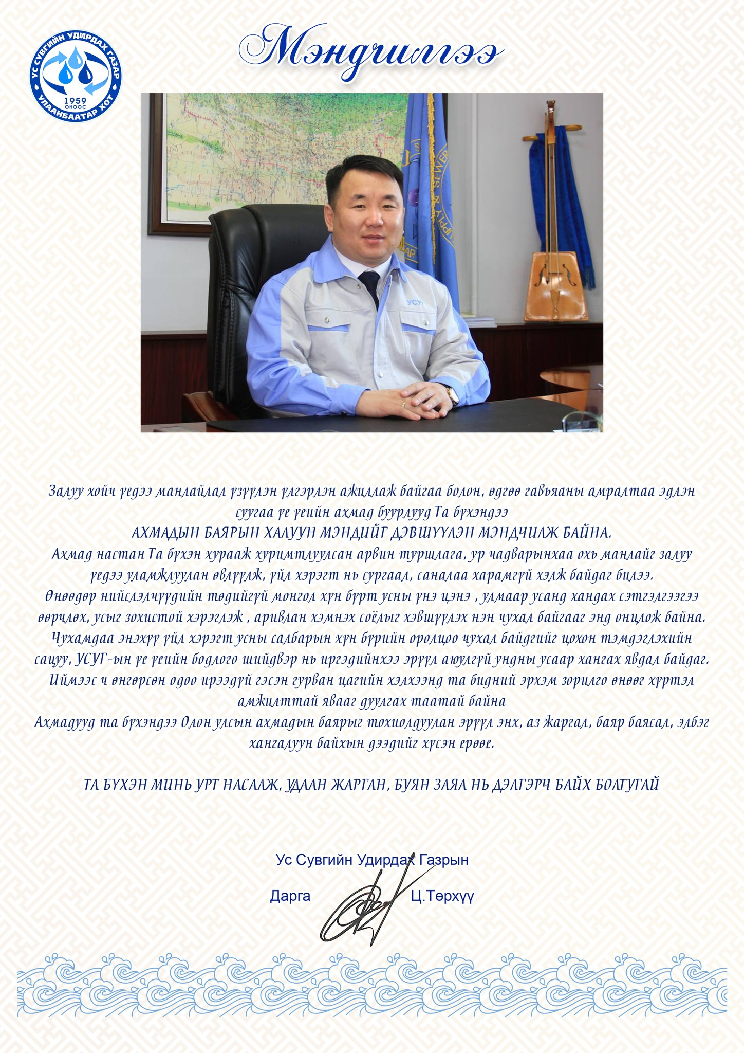 УСУГ-ын дарга Ц.ТӨРХҮҮ ахмадууддаа МЭНДЧИЛГЭЭ дэвшүүллээ