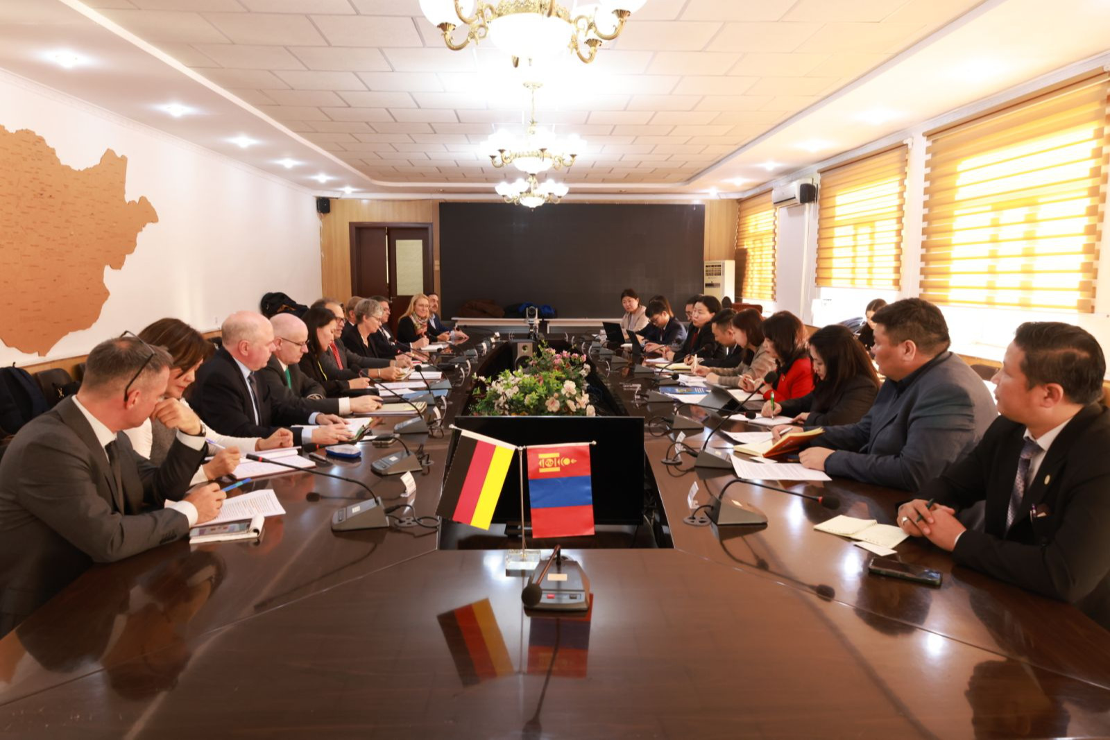 Монгол Улс болон Холбооны Бүгд Найрамдах Герман Улсын Засгийн газар хоорондын Хөгжлийн бодлогын хамтын ажиллагааны ээлжит хэлэлцээ Улаанбаатар хотод болох гэж байгаатай холбогдуулан Байгаль орчин, уур амьсгалын өөрчлөлтийн яамны Төрийн нарийн бичгийн дарга Ш.Батбаяр тэргүүтэй албаны төлөөлөгчид Холбооны Эдийн засгийн хамтын ажиллагаа, хөгжлийн яам (BMZ), Германы Олон улсын хамтын ажиллагааны нийгэмлэг (GIZ), Хөгжлийн банк (KfW), Холбооны Гео-шинжлэх ухаан, байгалийн нөөцийн хүрээлэн (BGR)-ийн төлөөлөгчидтэй уулзлаа.