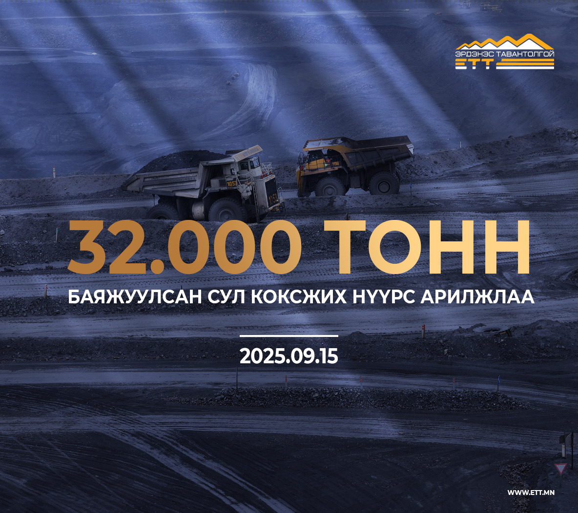 ЭТТ: “ЭРДЭНЭС ТАВАНТОЛГОЙ” ХК 32.000 ТОНН БАЯЖУУЛСАН СУЛ КОКСЖИХ НҮҮРС АРИЛЖЛАА