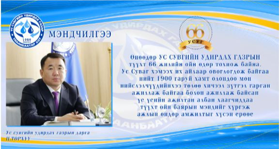 УС СУВГИЙН УДИРДАХ ГАЗРЫН түүхт 66 жилийн ойн өдөр тохиож байна